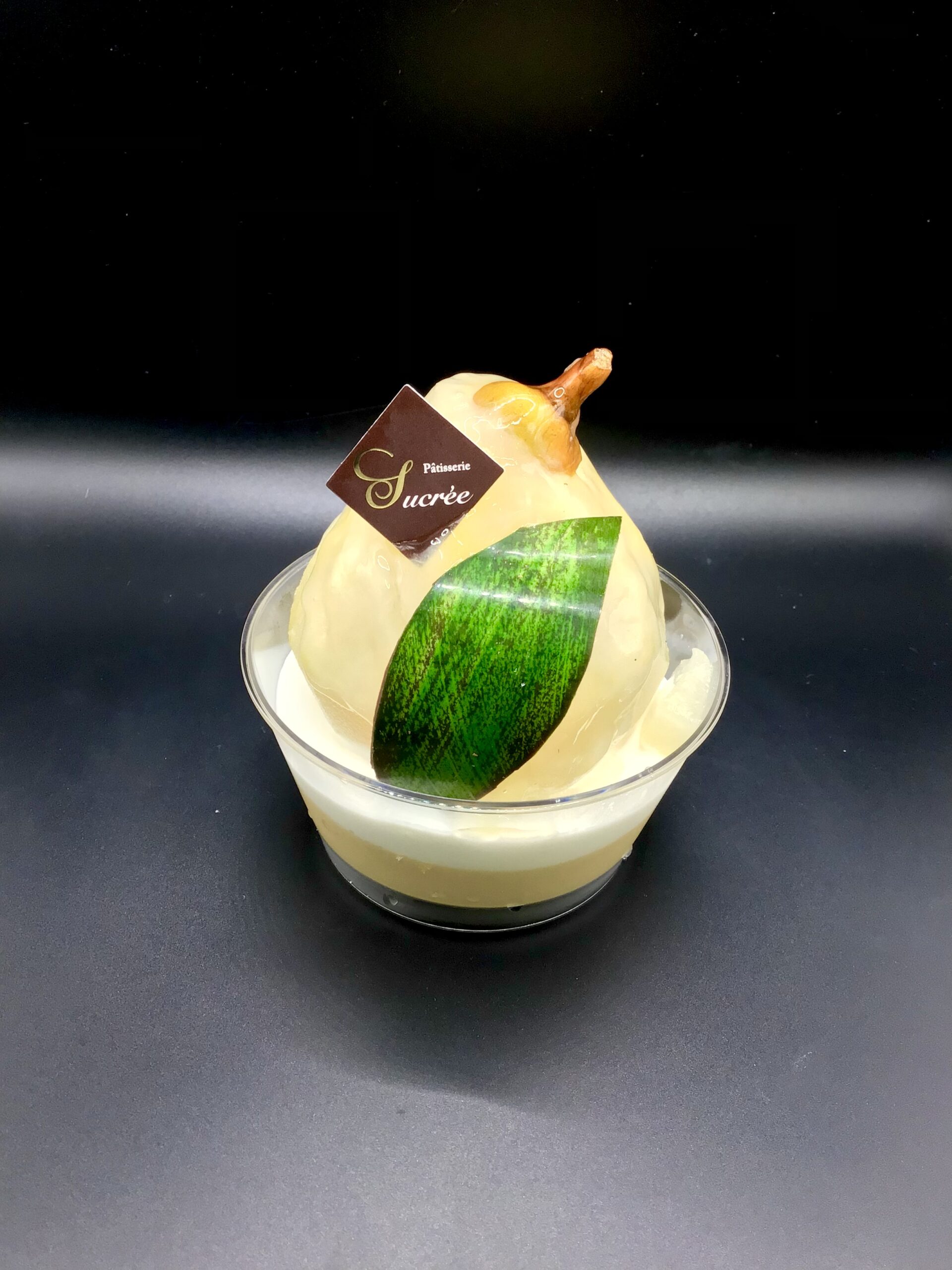 旬な洋梨を厳選し、コンポートしたデザートです。下のキャラメルムースと共に、味わってみてください。