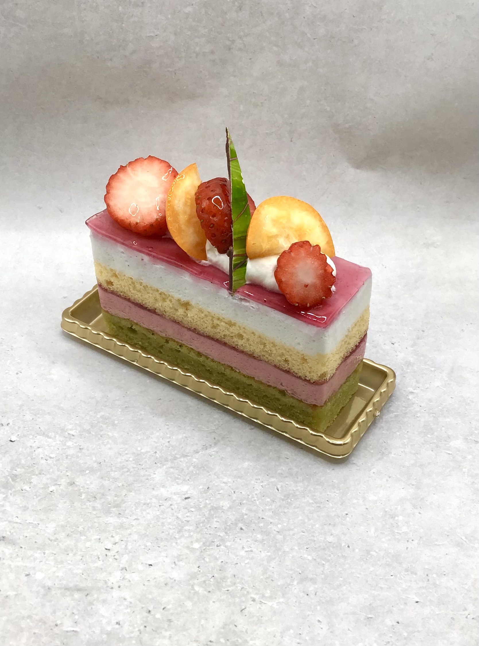 ピスタチオのジョコンドに、いちごのムース、ココナツのムースを組み合わせました。