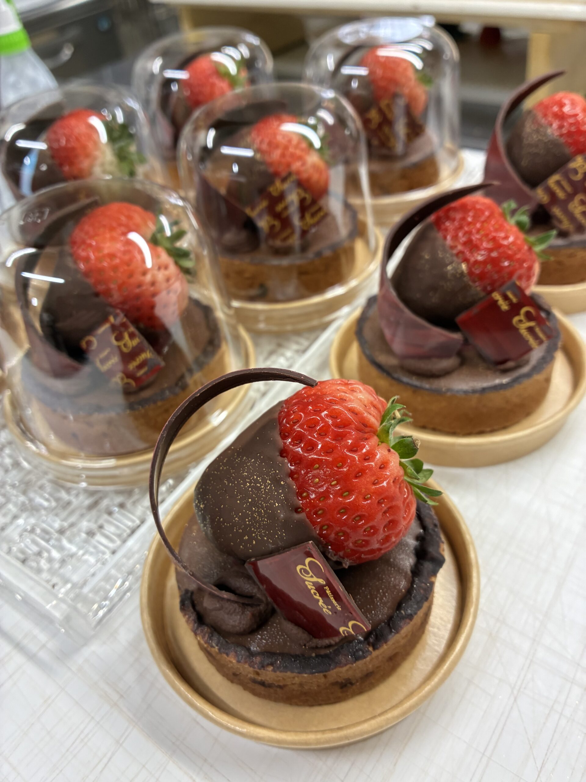 パリパリ食感のタルトの上にチーズクリームを絞り、いちごをふんだんに飾りました。